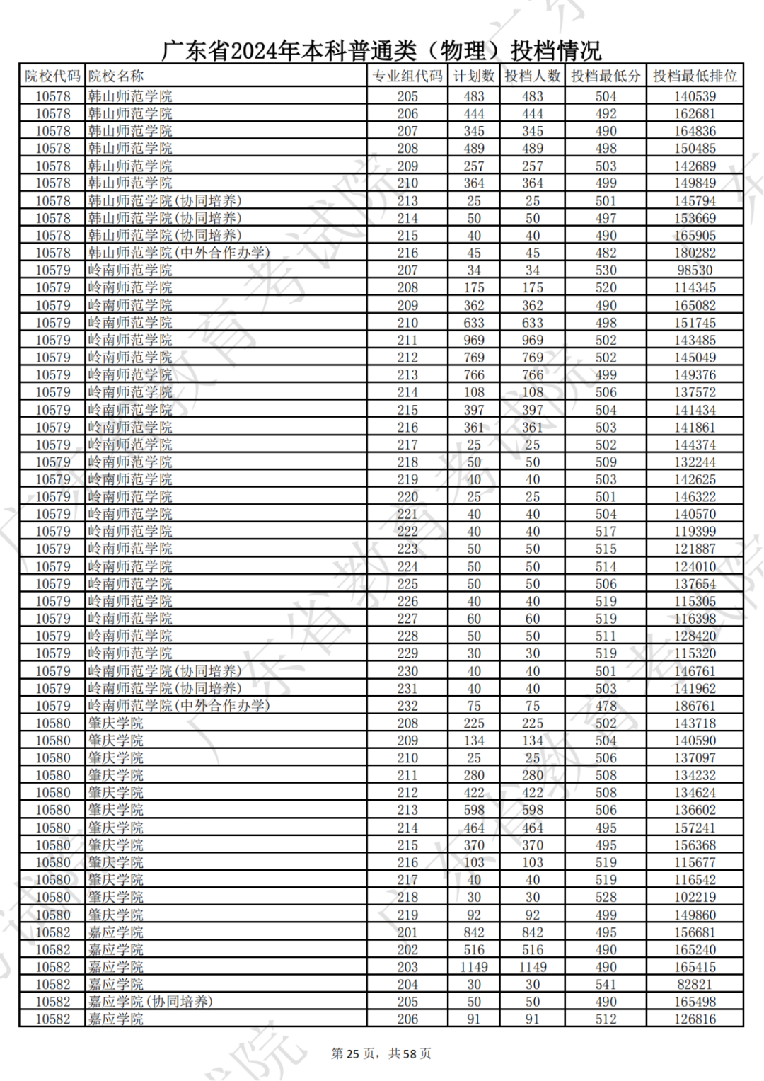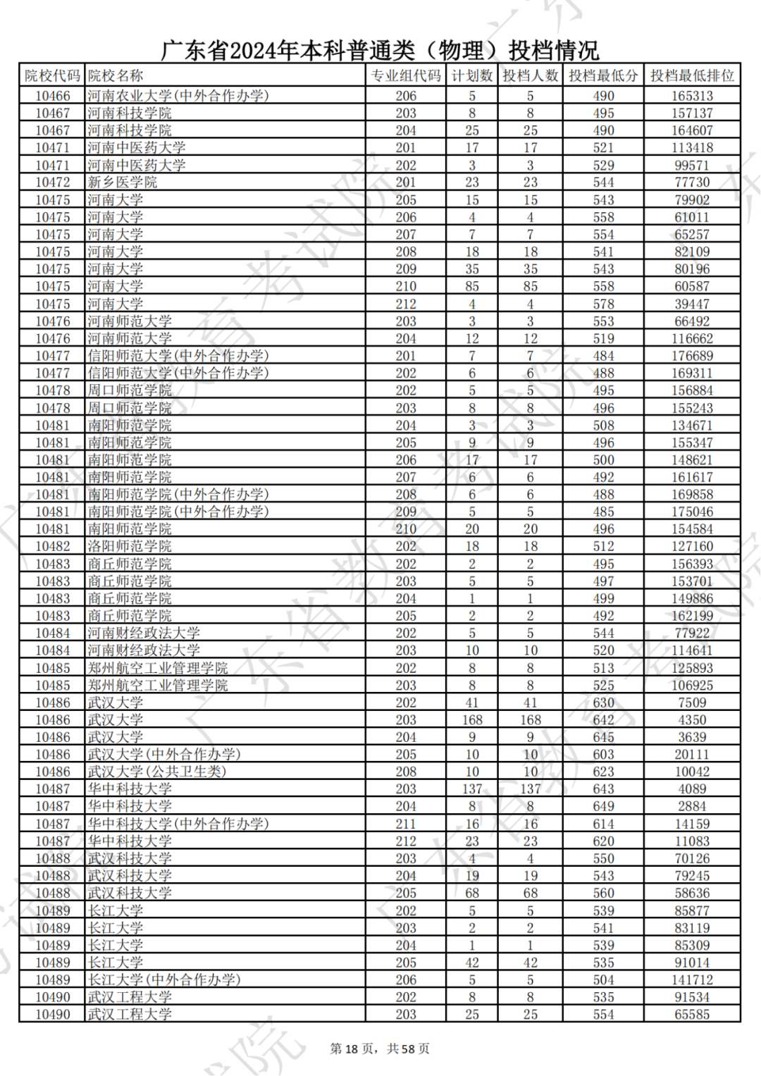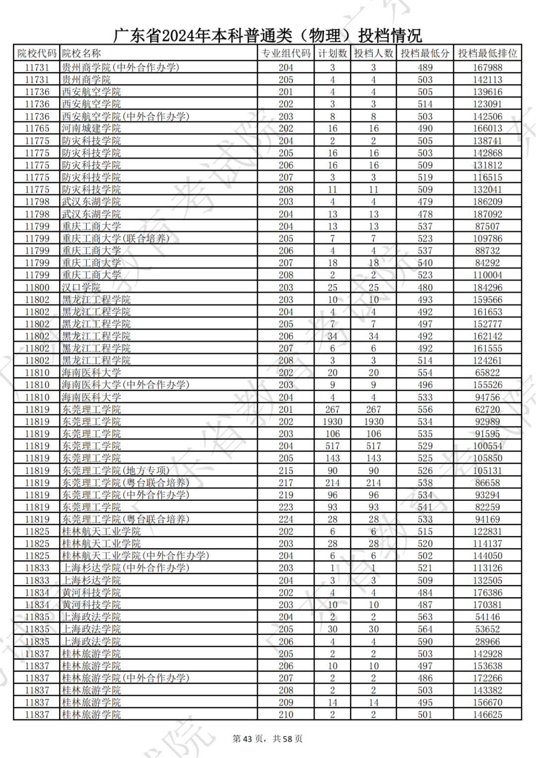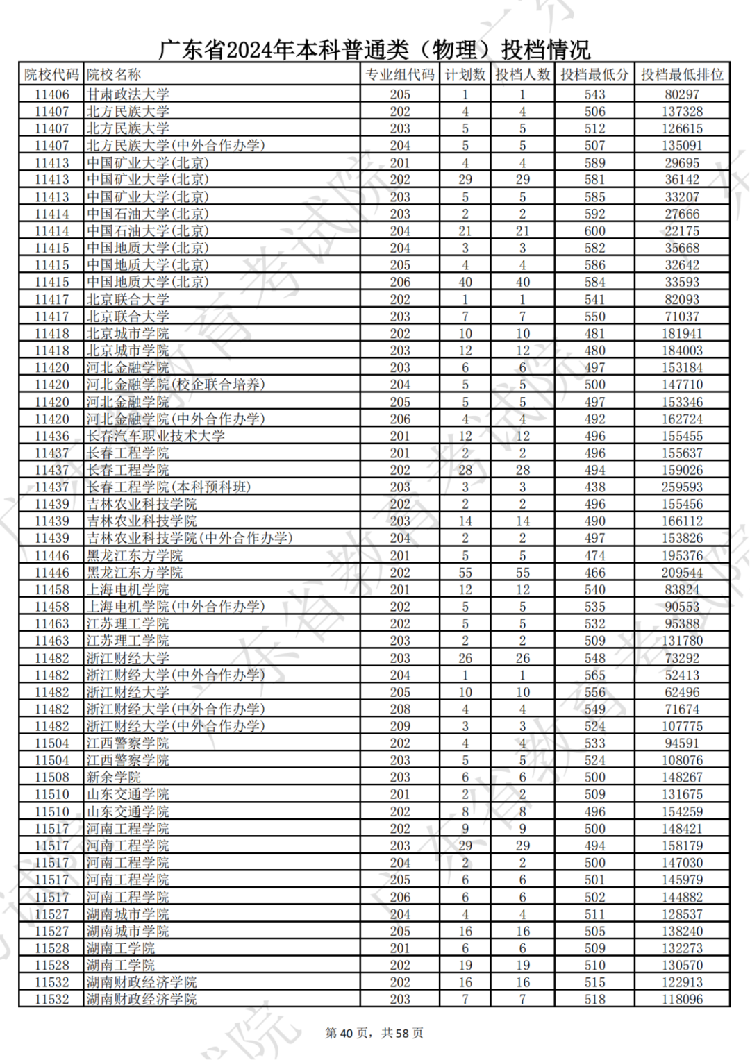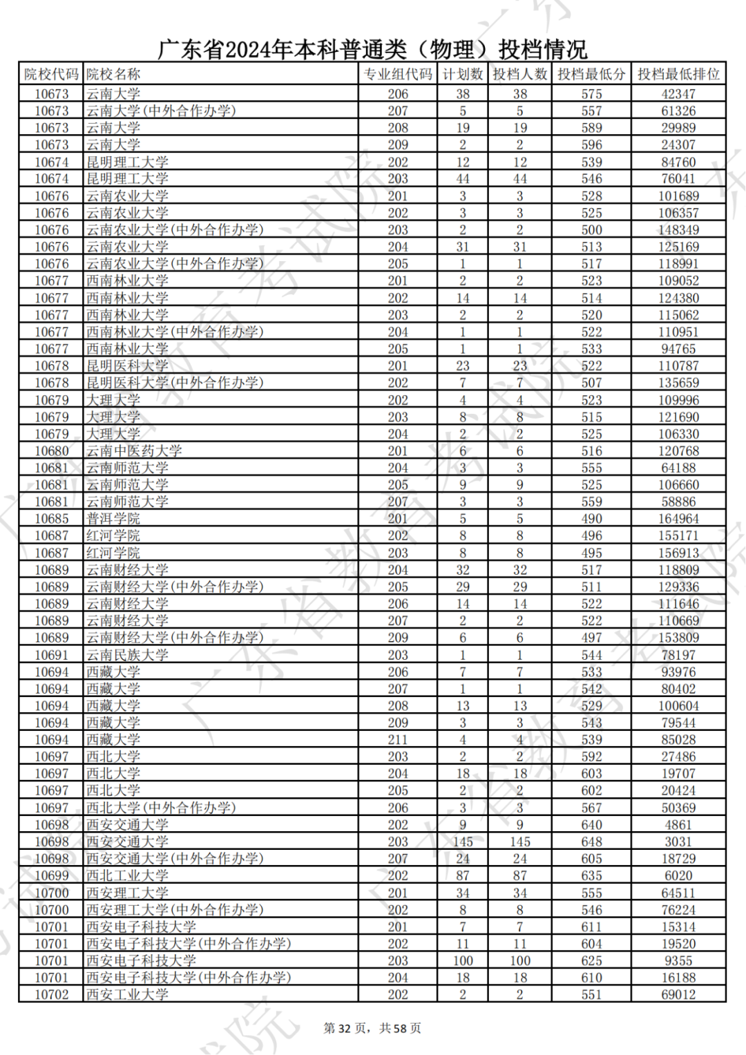 广东省2024年本科物理类投档情况