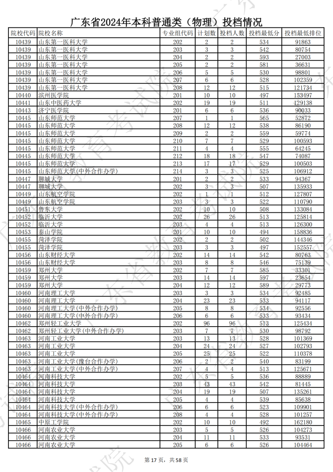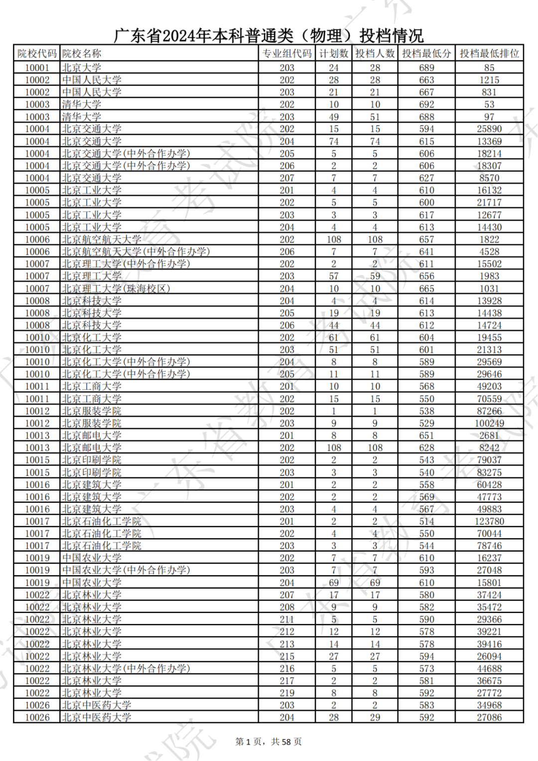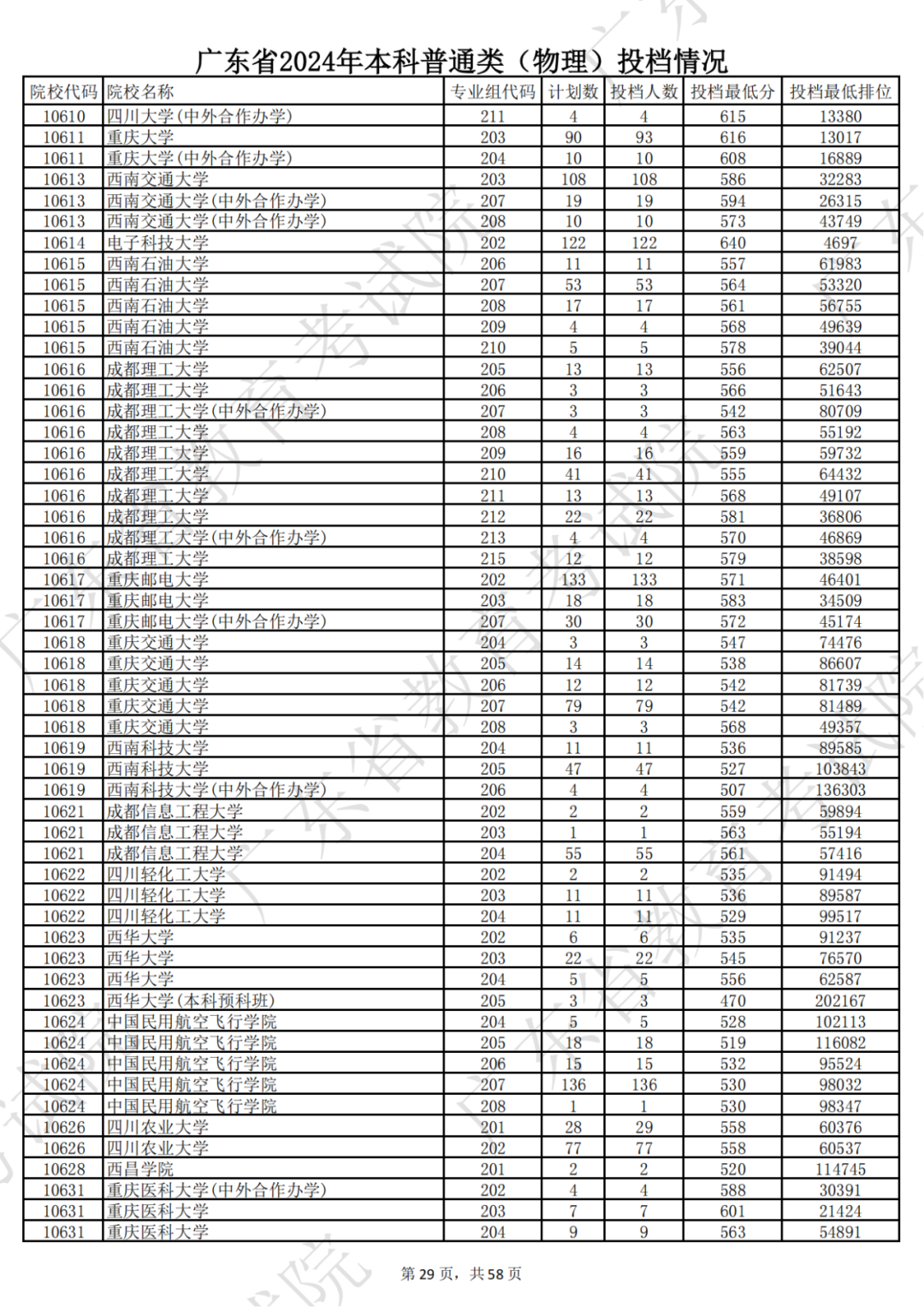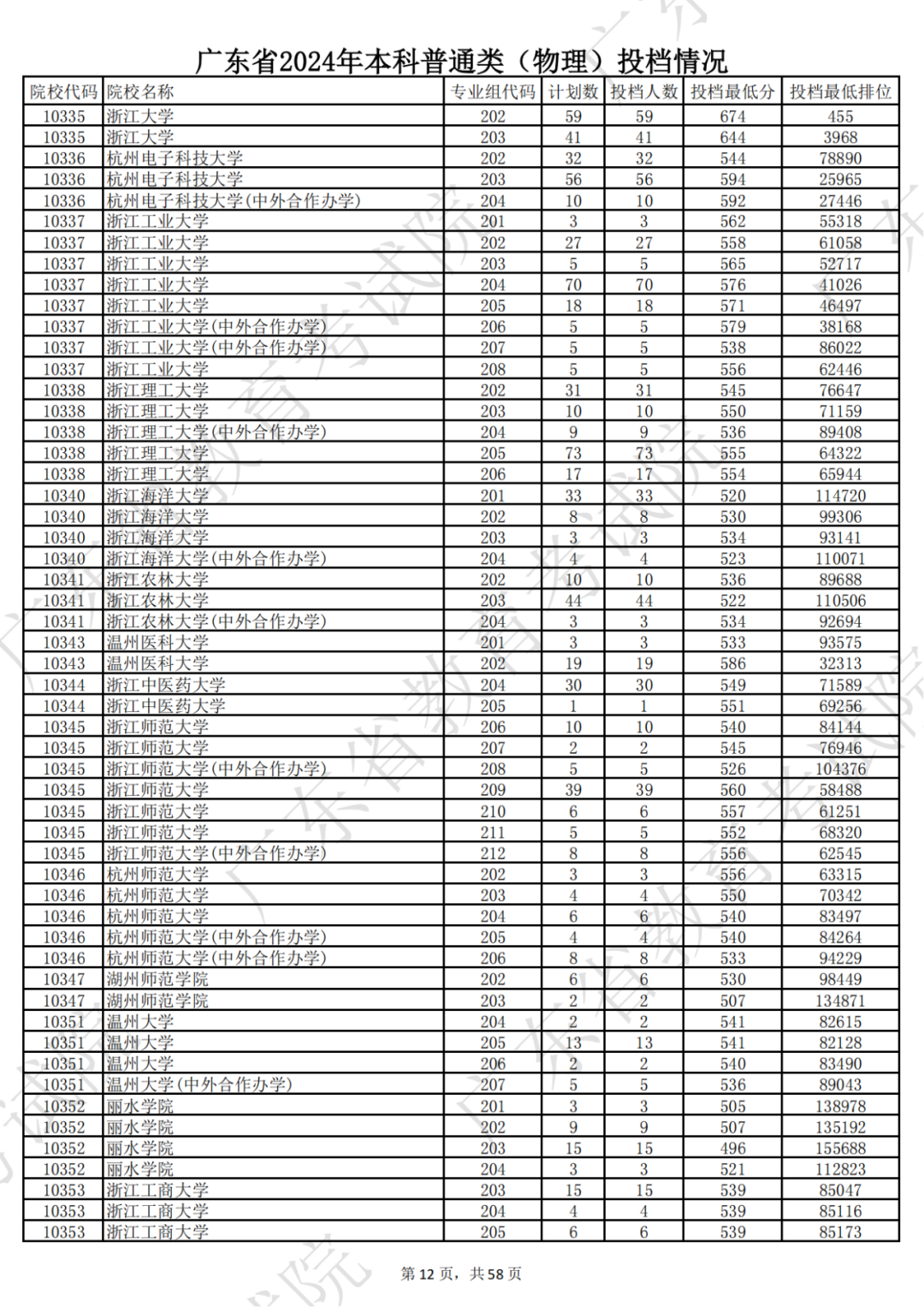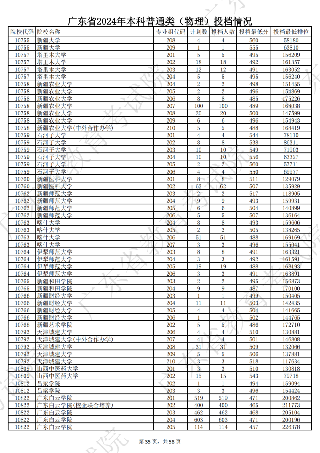 广东省2024年本科物理类投档情况