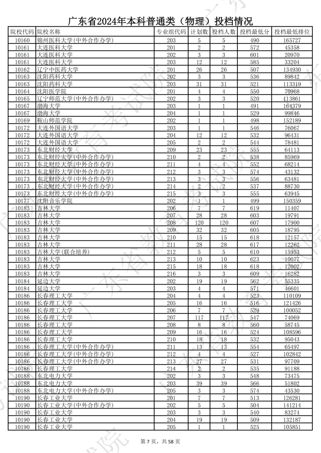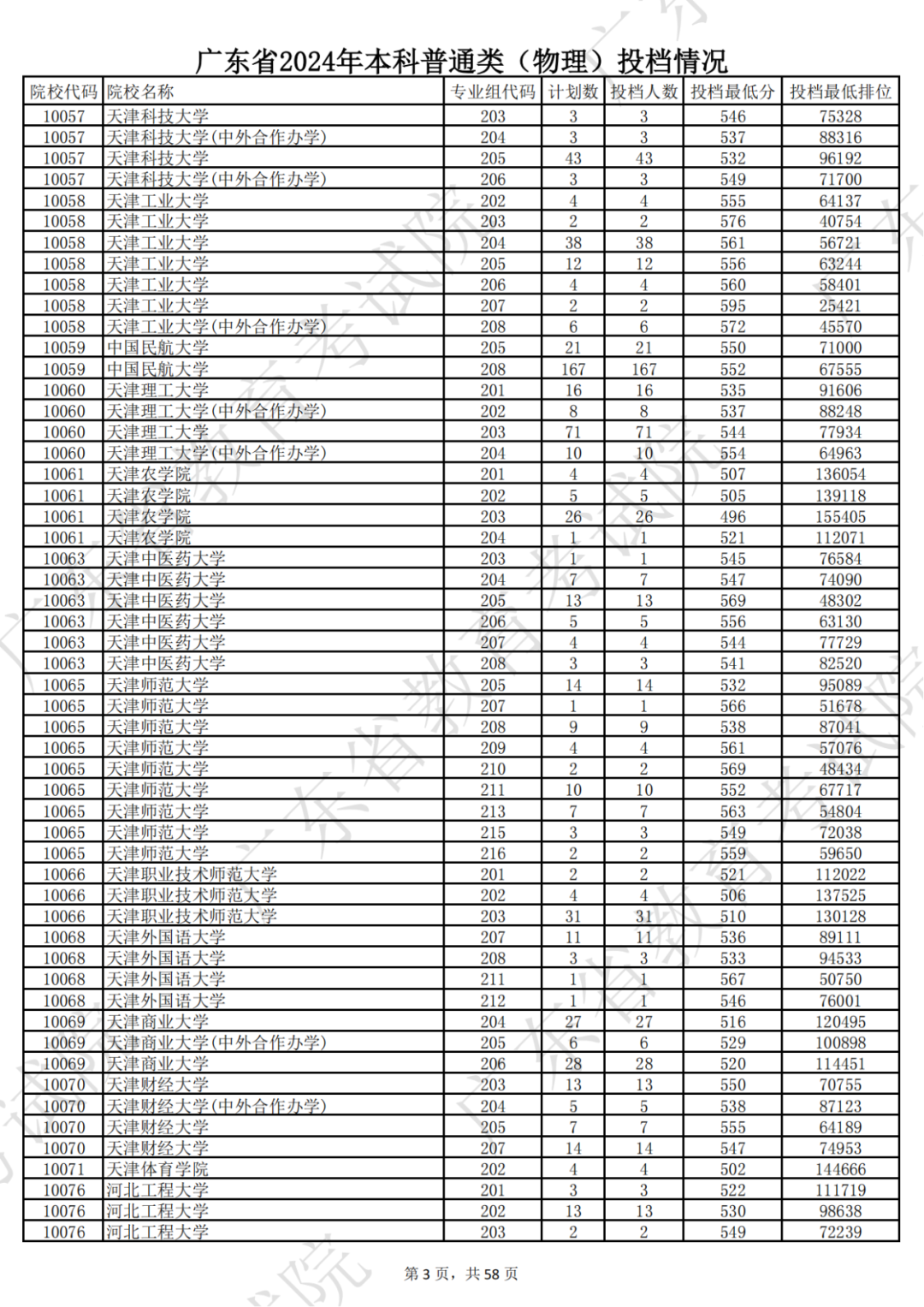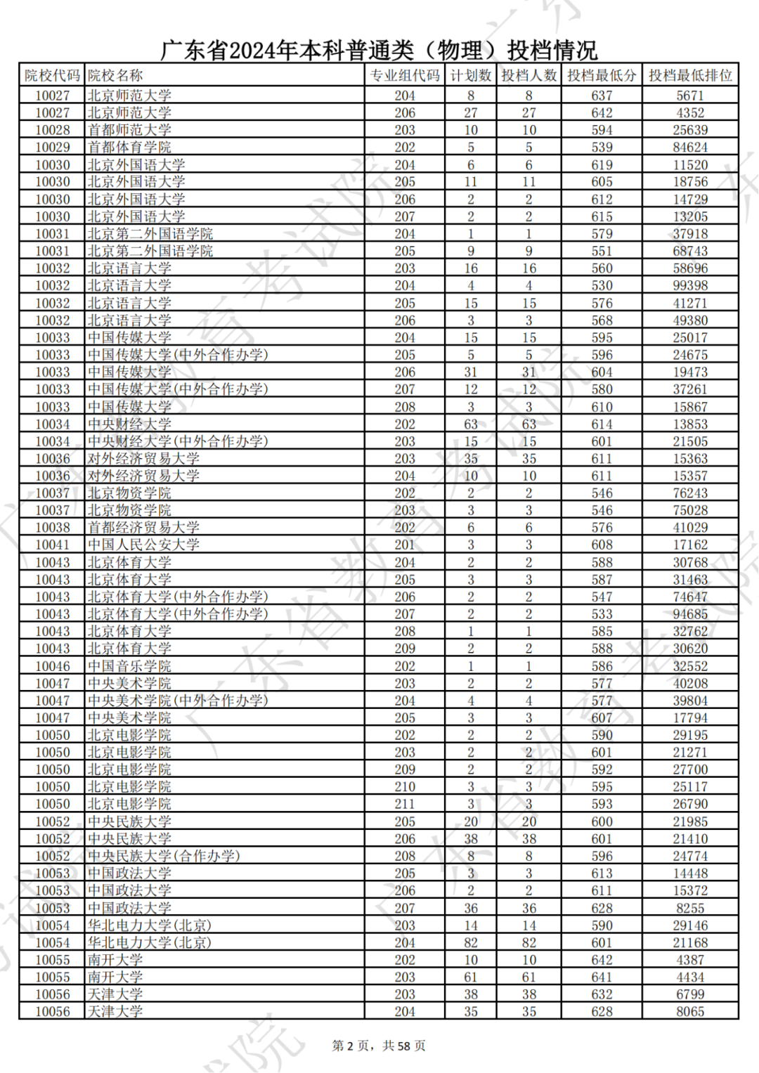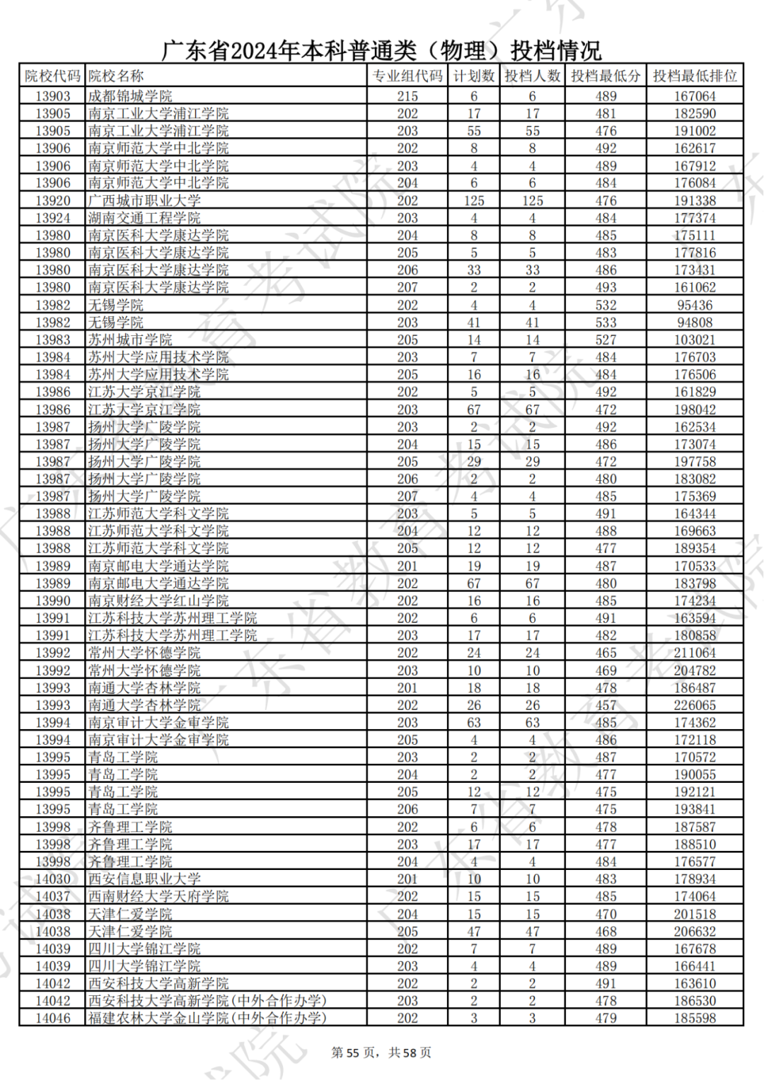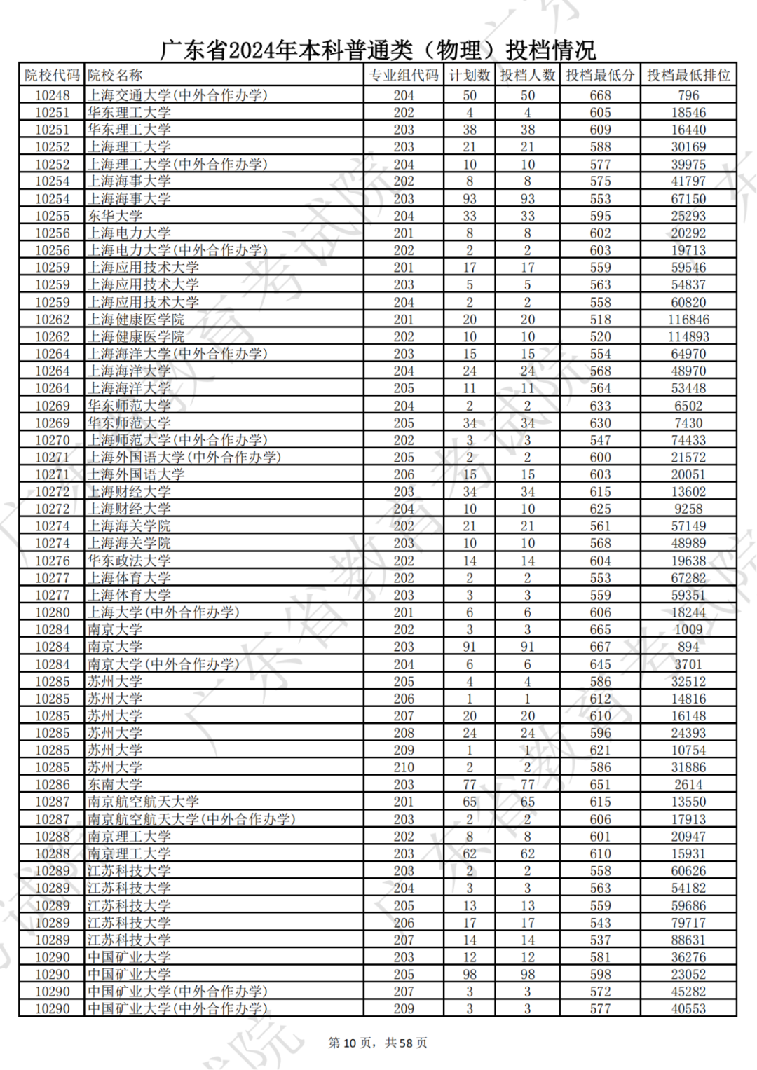 广东省2024年本科物理类投档情况