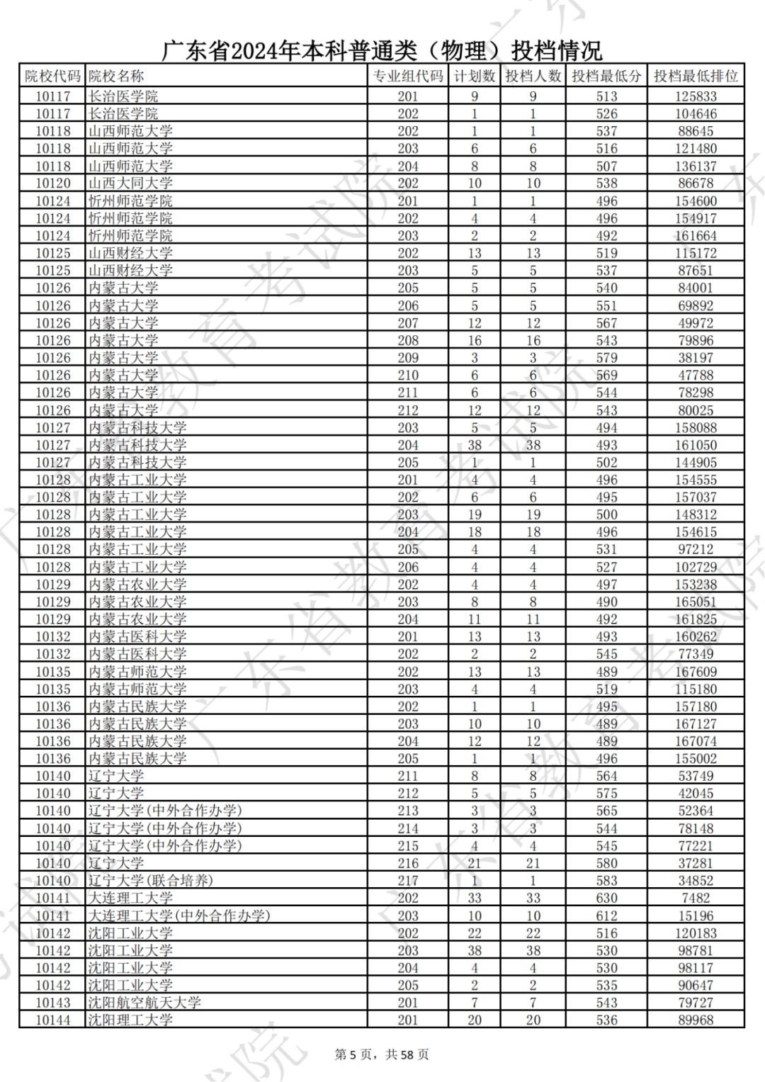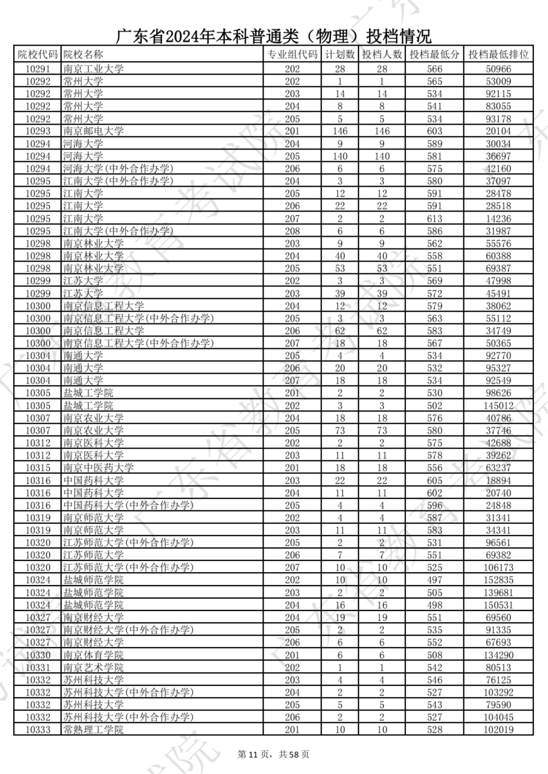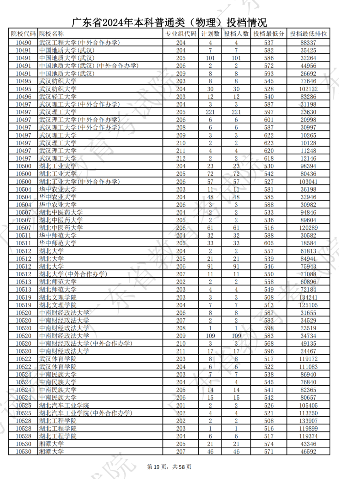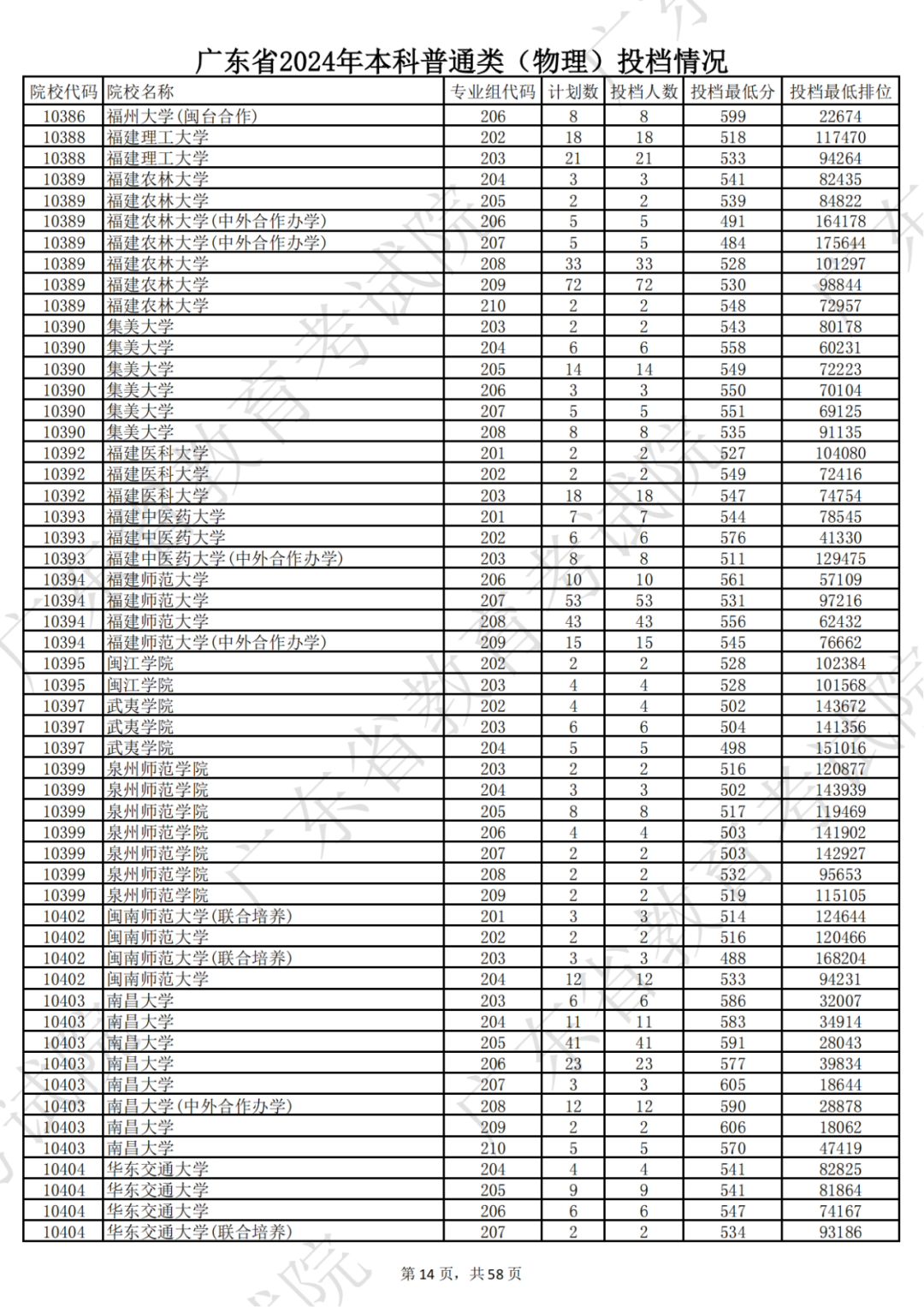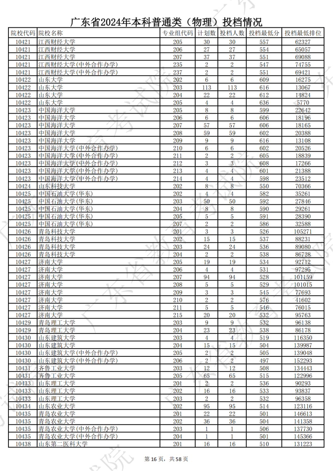 广东省2024年本科物理类投档情况