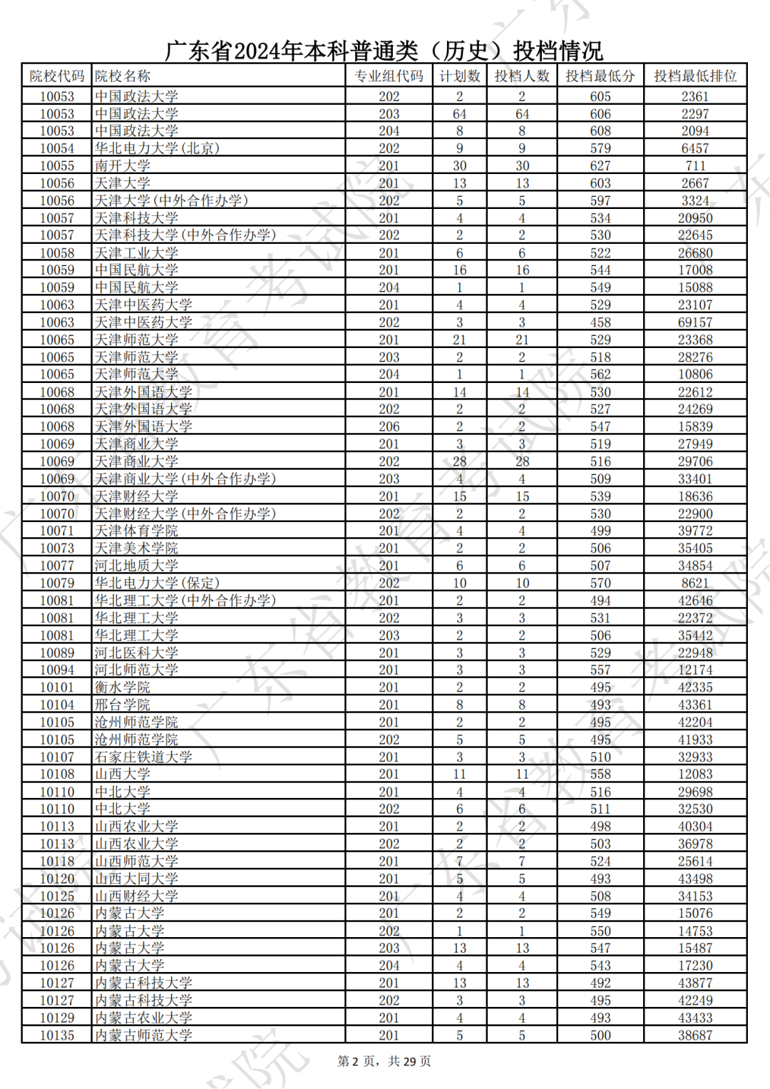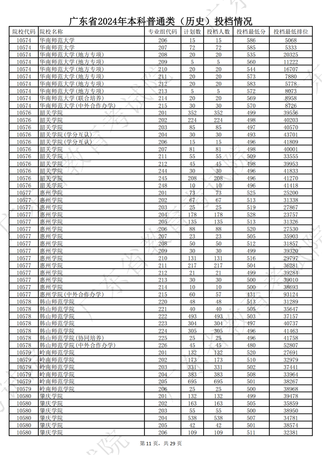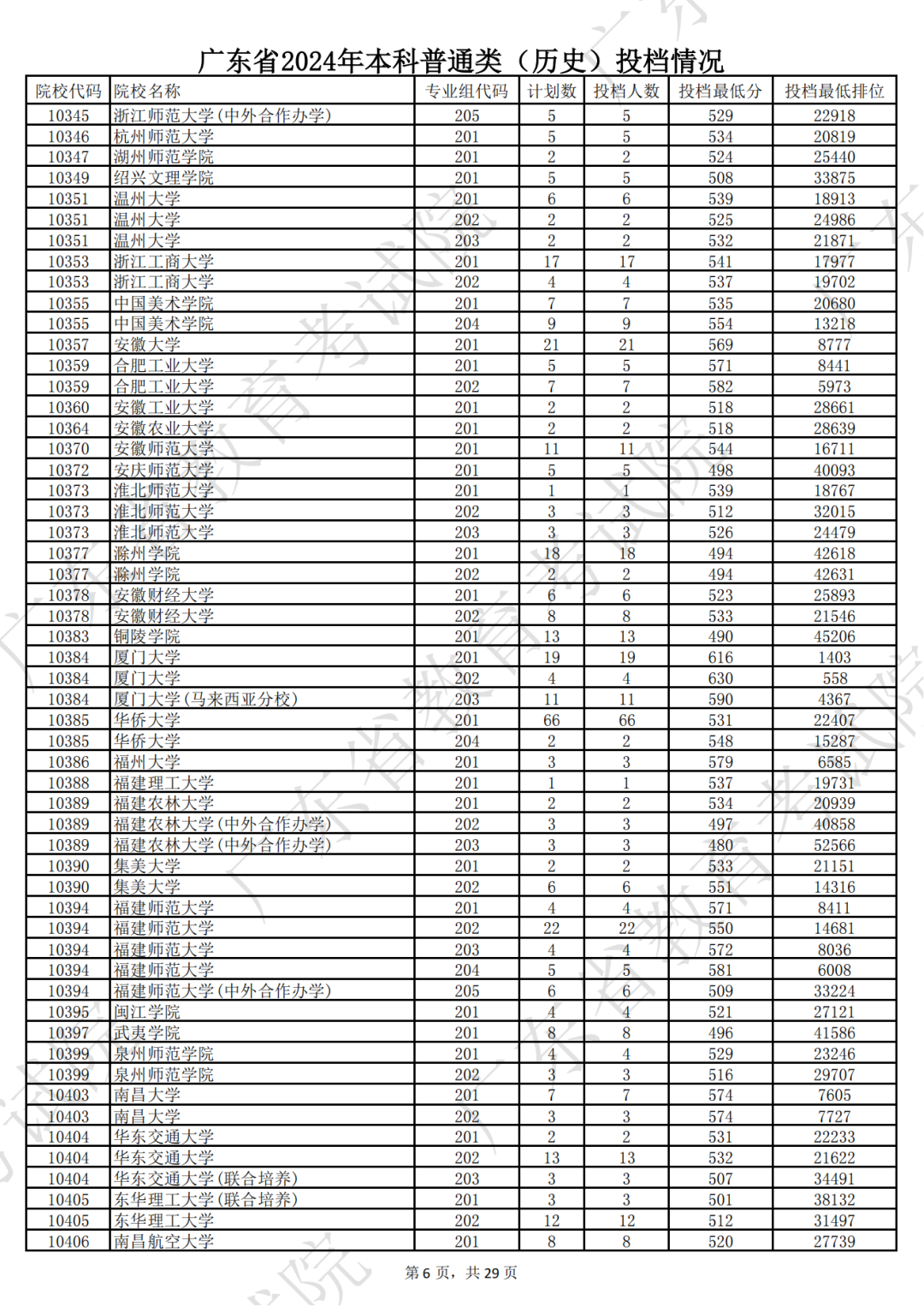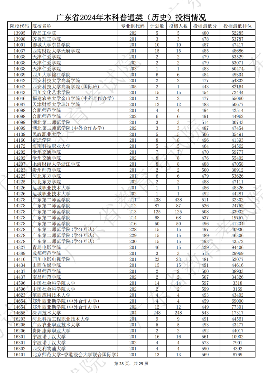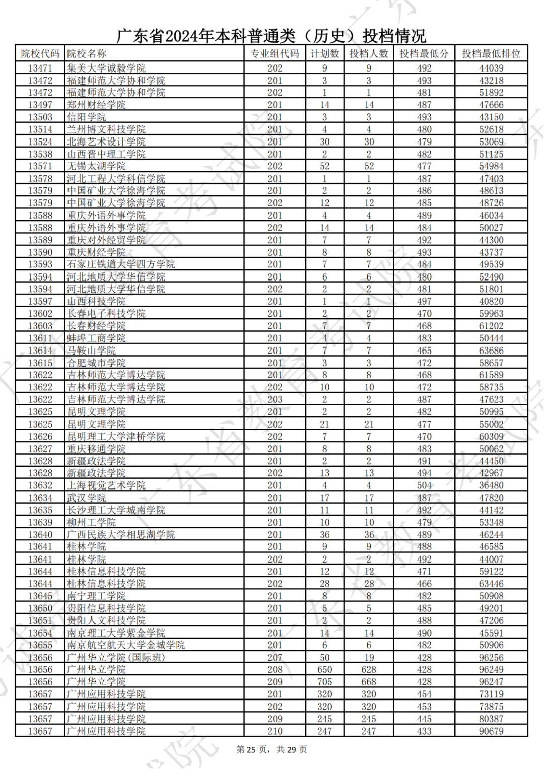 广东省2024年本科历史类投档情况