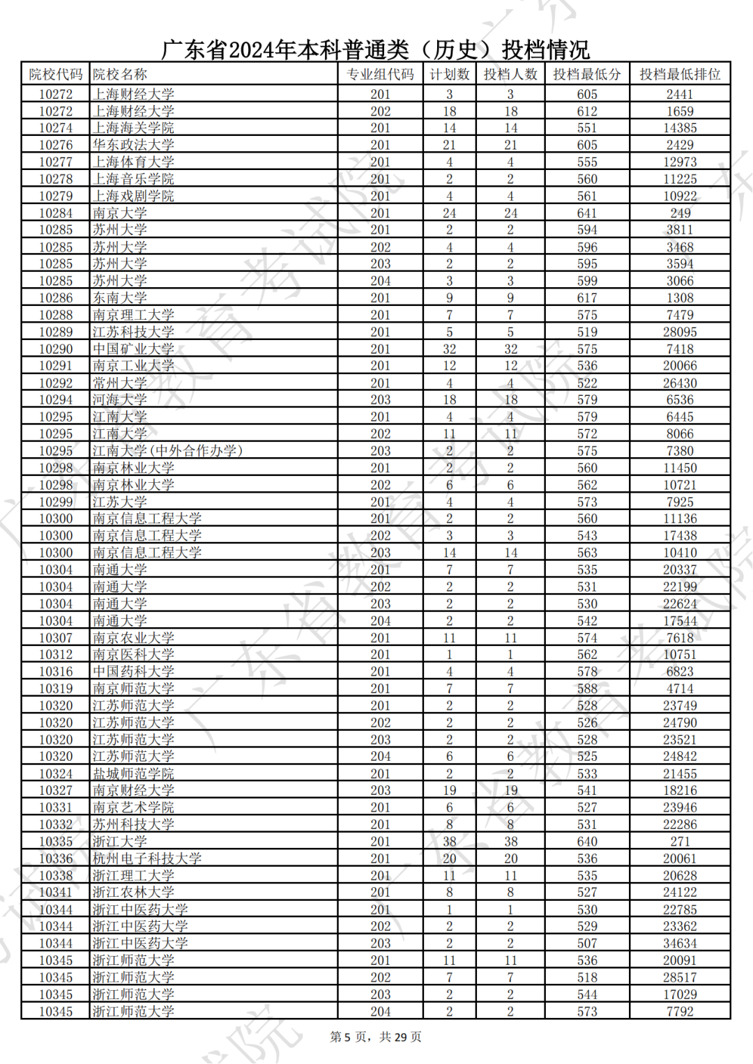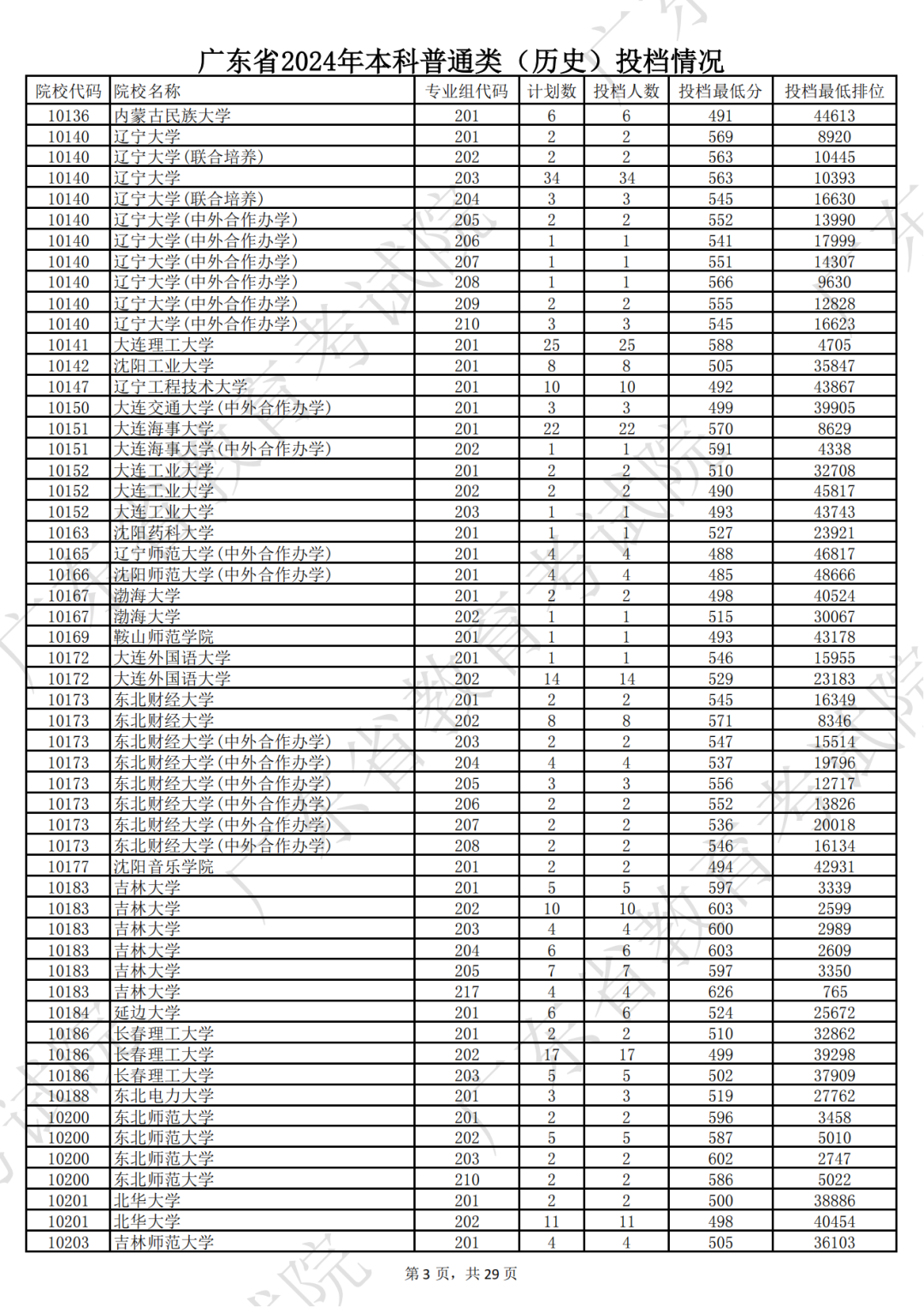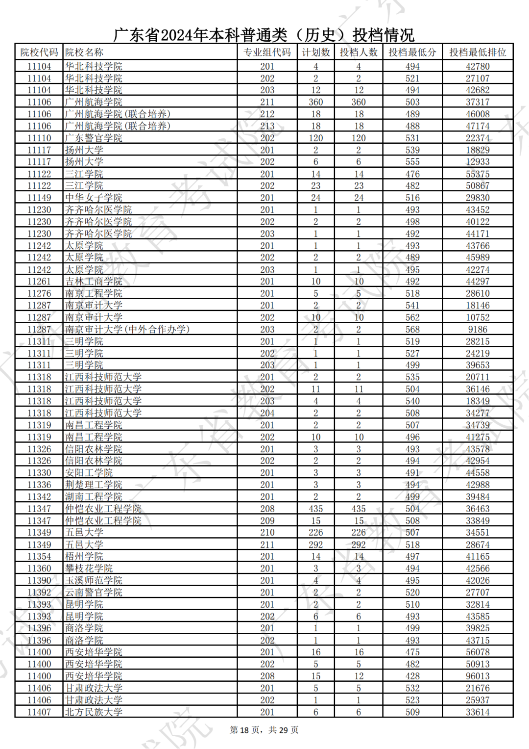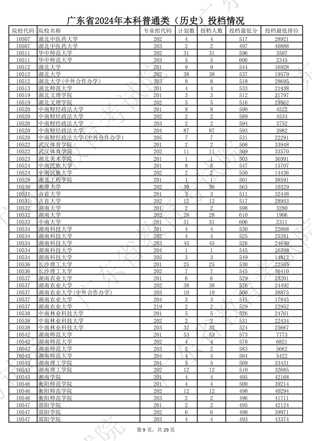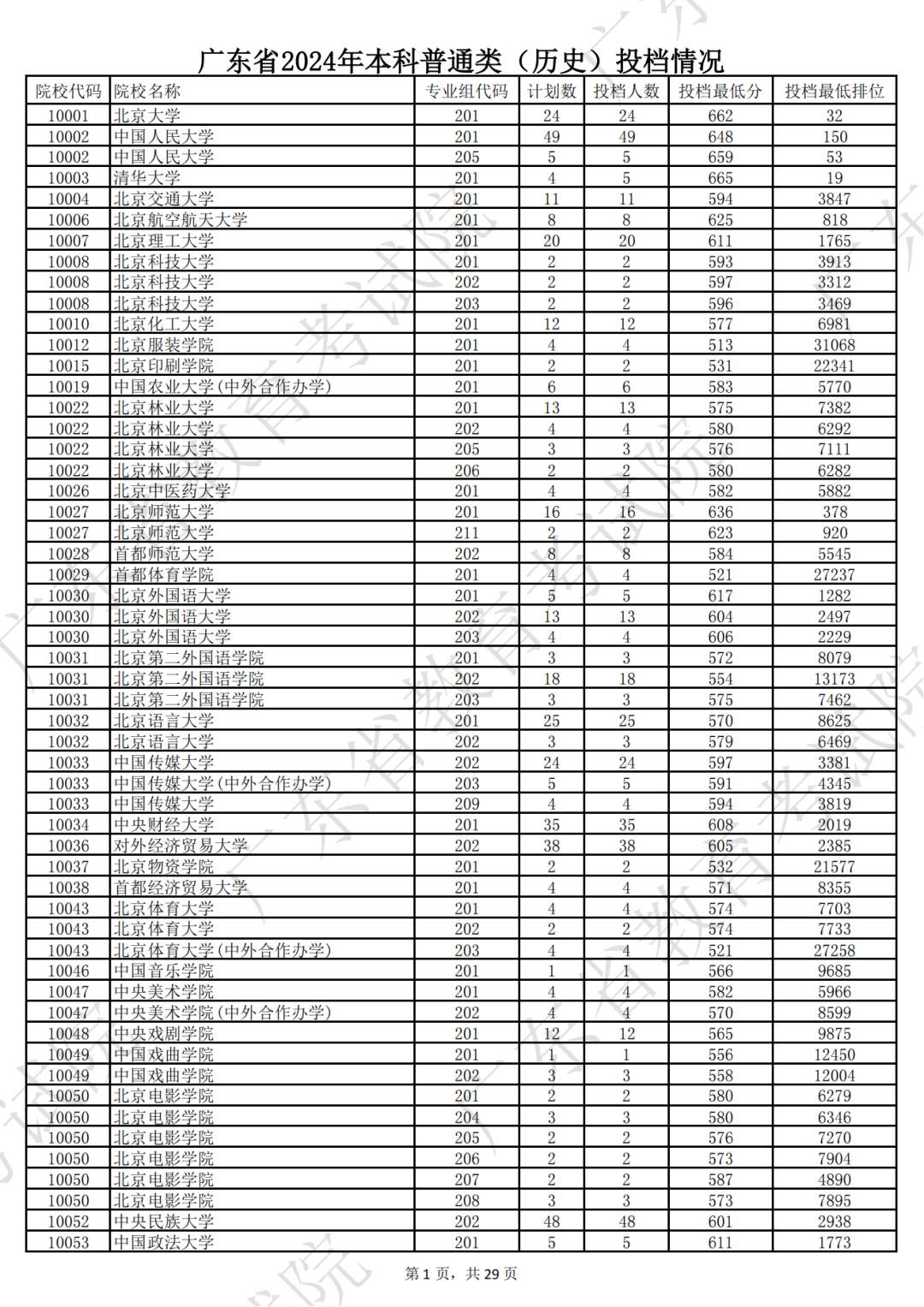 广东省2024年本科历史类投档情况