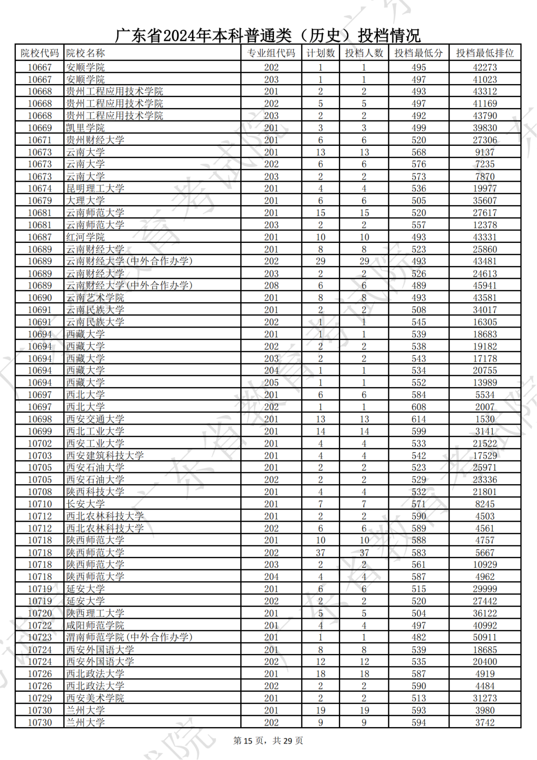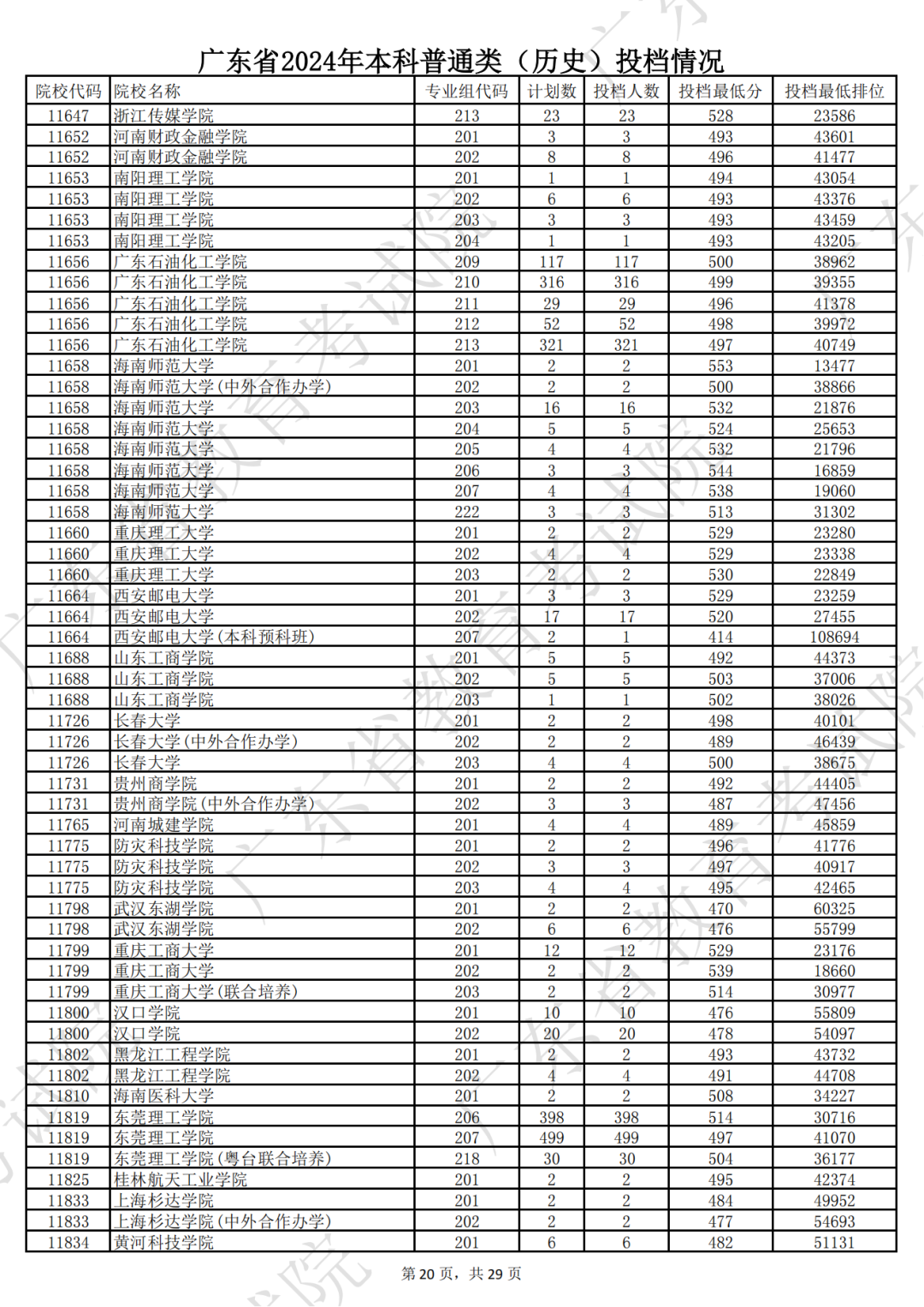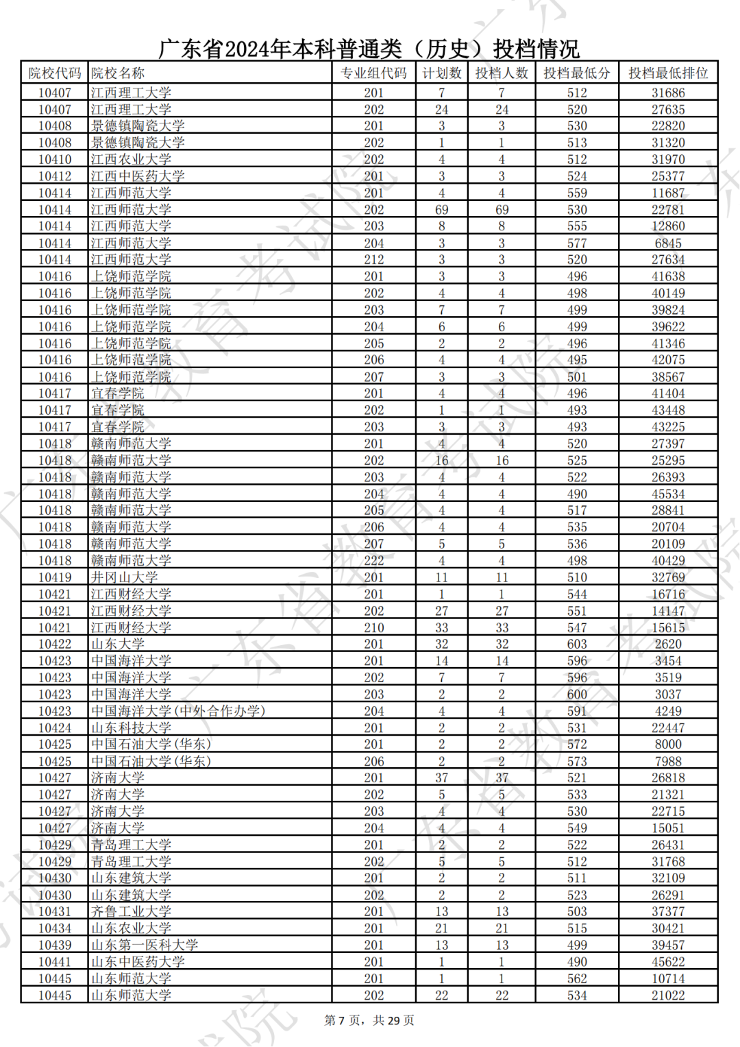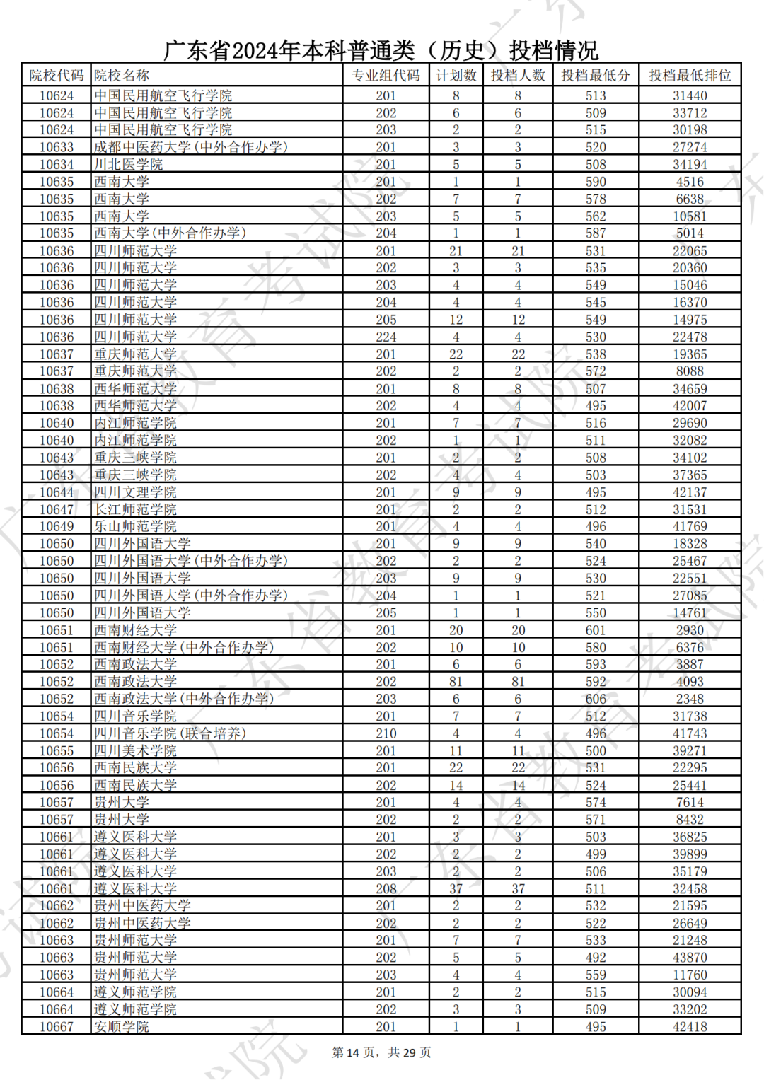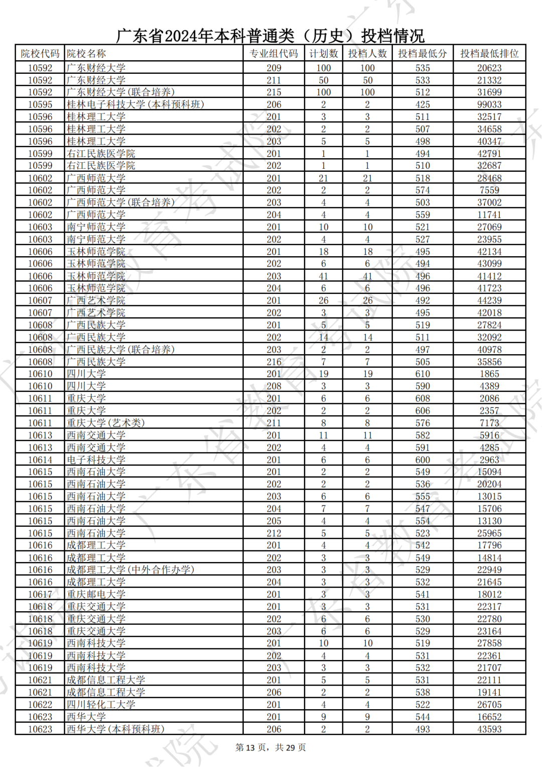 广东省2024年本科历史类投档情况