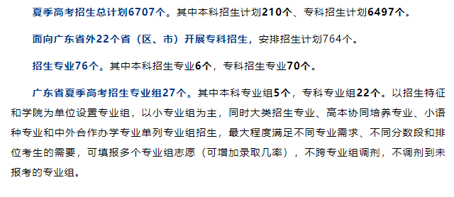 其中,2024年夏季高考本科招555人,专科招4822人。本科比去年增加355人,去年面向广东省招收200人,今年新增6个省开展本科招生。专科招生比去年减少1086人。