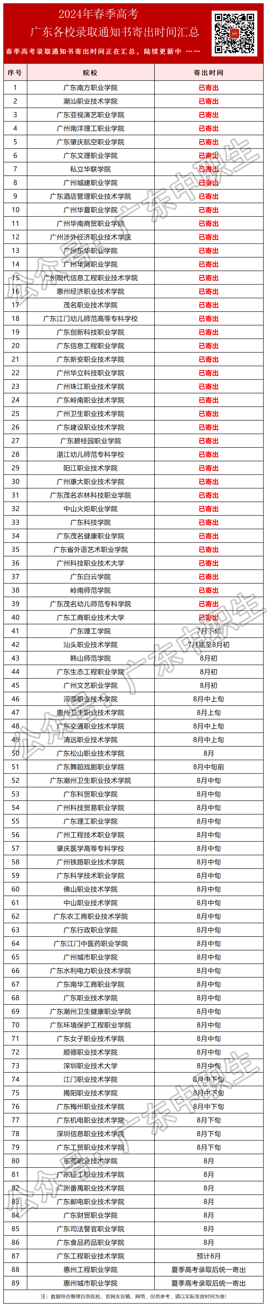 深职大、广轻大本科录取通知书已寄出!专科预计8月中旬寄出
