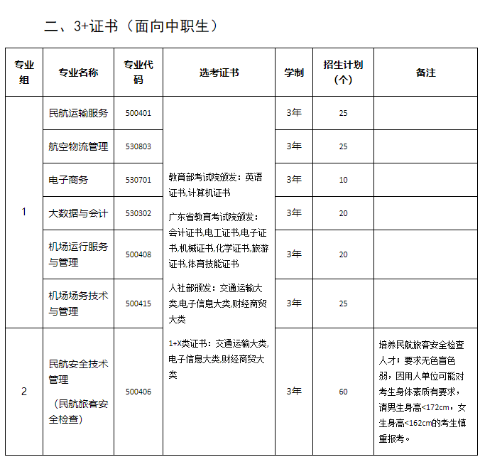 2024年“3+证书”招生计划