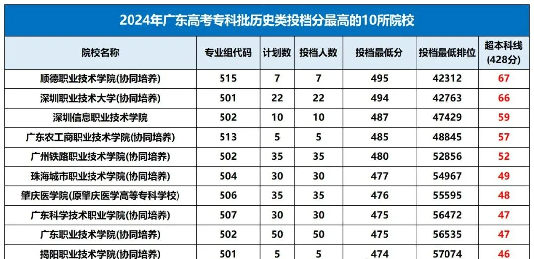 其中深职大物理类的投档分深职高达496分,远超本科省控线。历史类投档最高的是顺职的495分,超本科线67分;肇庆医学院在今年升本之后,历史类投档热度也是空前高涨,投档分排名名列前茅~