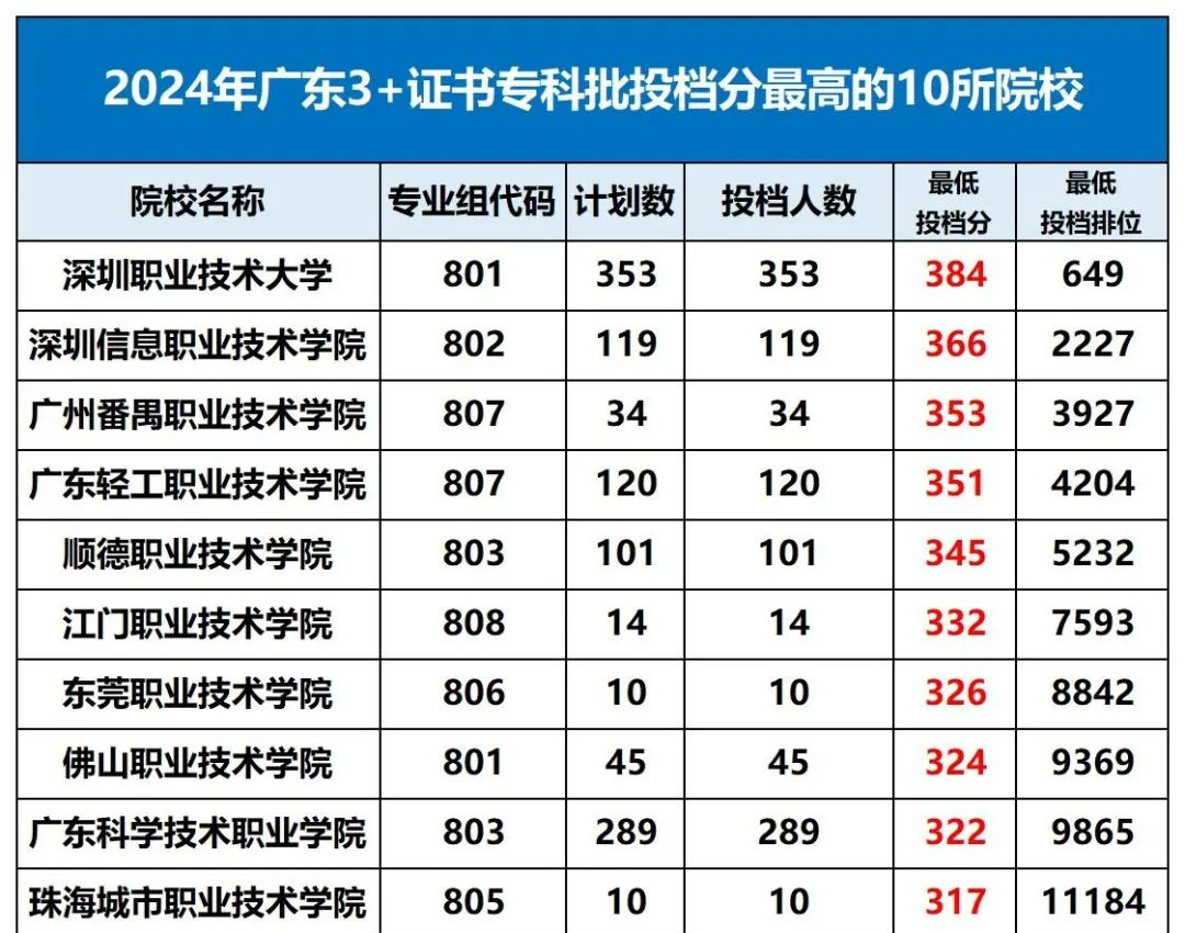 24年广东高考专科最高分10所院校,明年3+证书会跟着涨分吗?