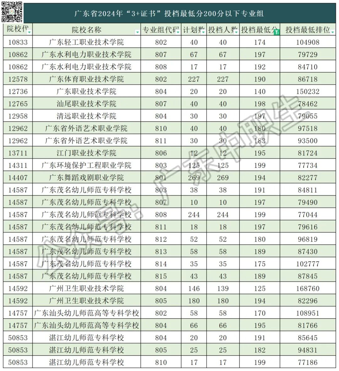 2024年3+证书录取的分数比往年有上涨,省控线都比往年上涨了15分,今年200分以下的公办学校其实不多,能捡漏的就更少了。