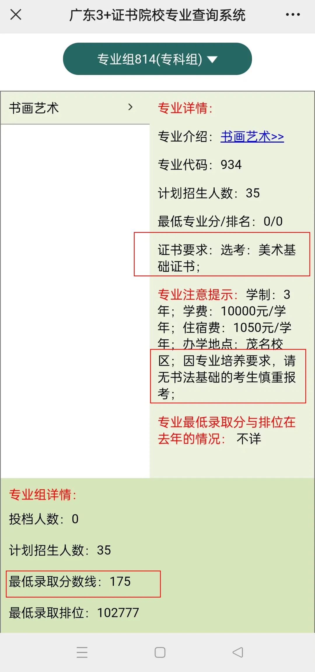 分数低能捡漏的原因:814专业组只招书画艺术专业,需要美术基础证书,可能是原本分数并不高,并且需要书法基础。
