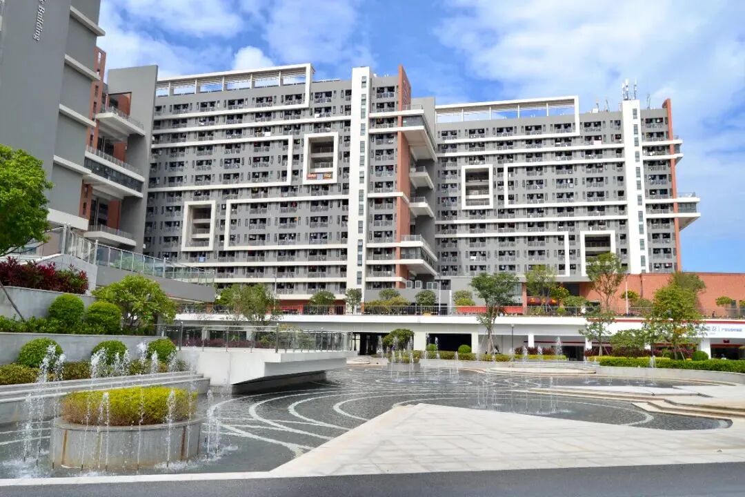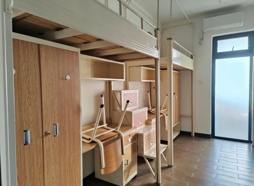 宿舍统一为四人间,采用上床下桌的个人空间形式。宿舍内均配有风扇和空调,宿舍楼内均配有电梯。