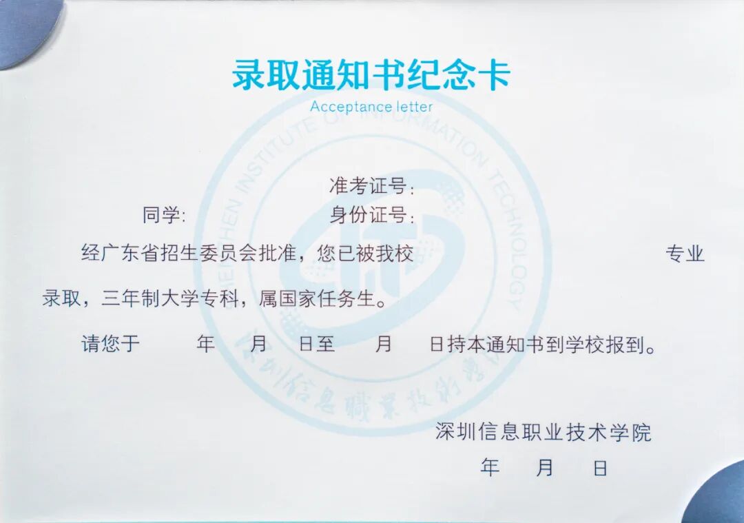 深信院、广东工贸职院寄出录取通知书!