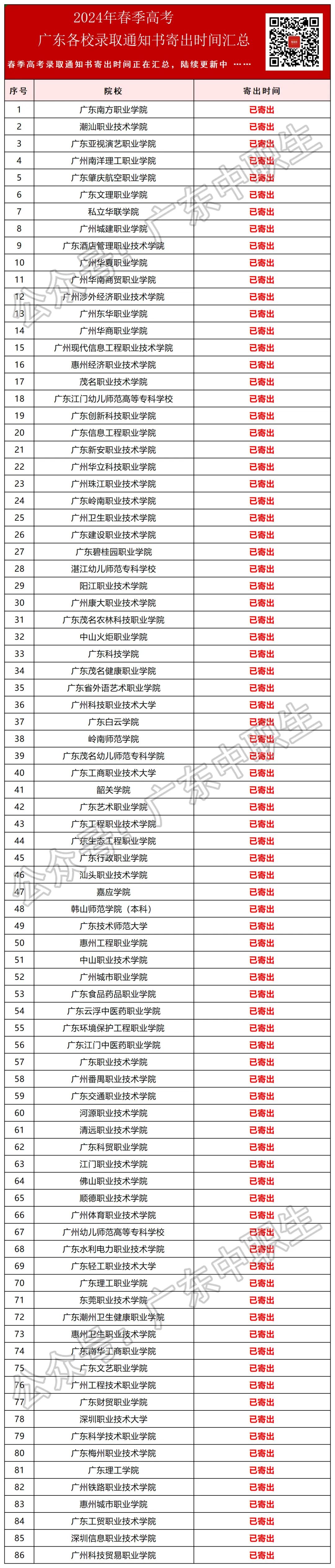 截至目前,3+证书9所本科已全部寄出录取通知书,专科已有86所院校寄出录取通知书,预计月底前3+院校全部录取通知书会寄出,还没收到的同学耐心等候。