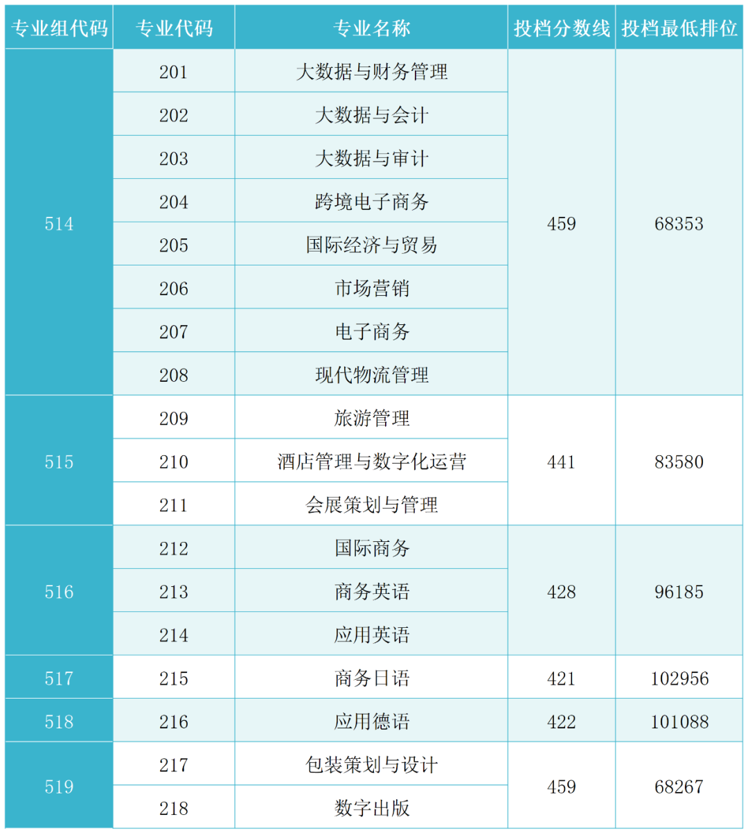 3+证书:除去802中外合作专业组,810专业组是门槛较低的专业组,录取最低分304分,最低排位14725。2023年广轻录取最低分为301分,最低排位9064,相比去年相差5661个排位。