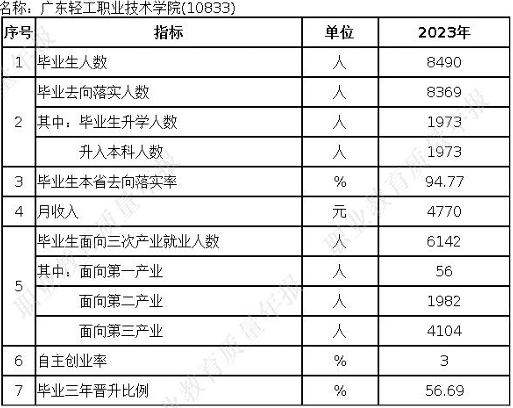 来源:广东轻工职业技术学院高等教育质量报告(2023年度)