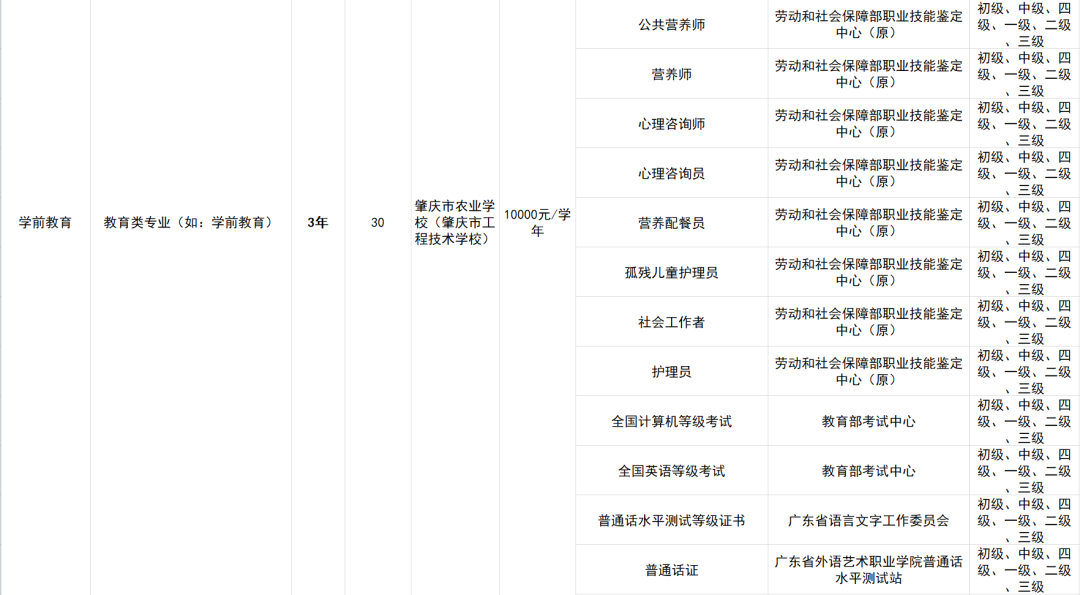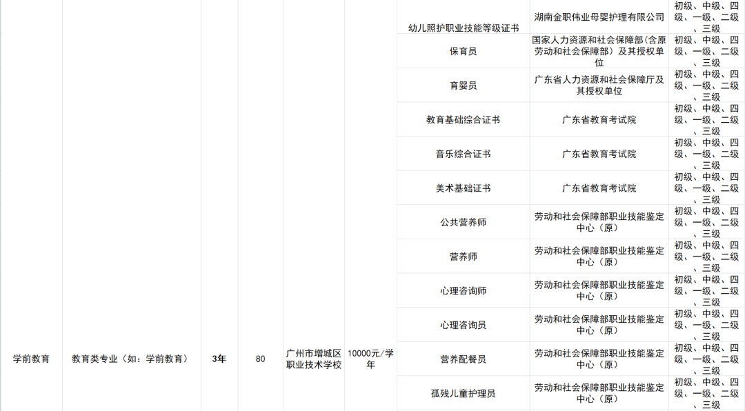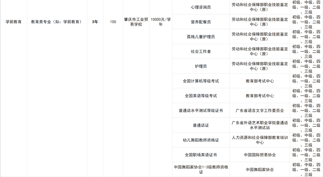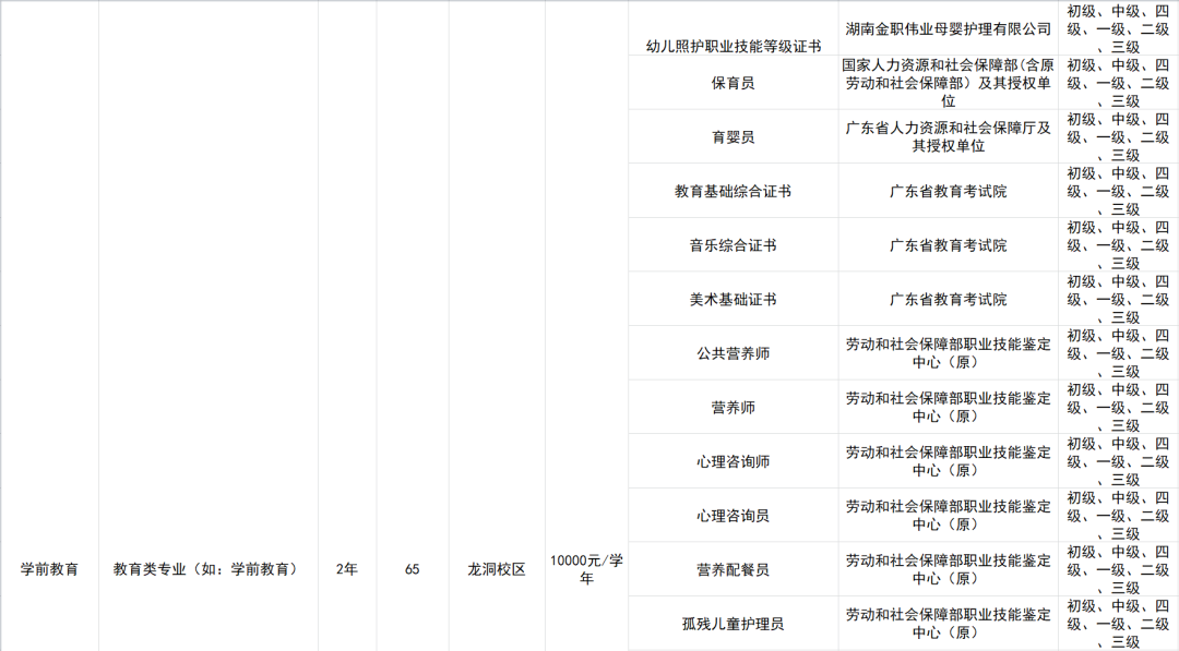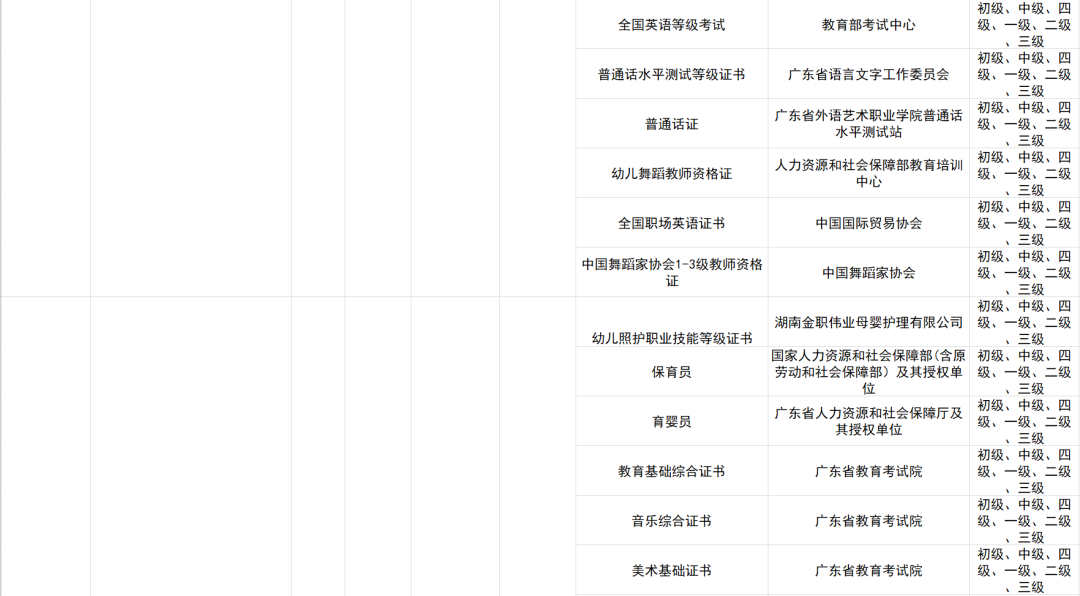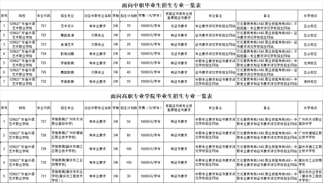 广东省外语艺术职业学院2021年自主招生面向中职毕业生招生专业一览表(含专业对应的技能证书)