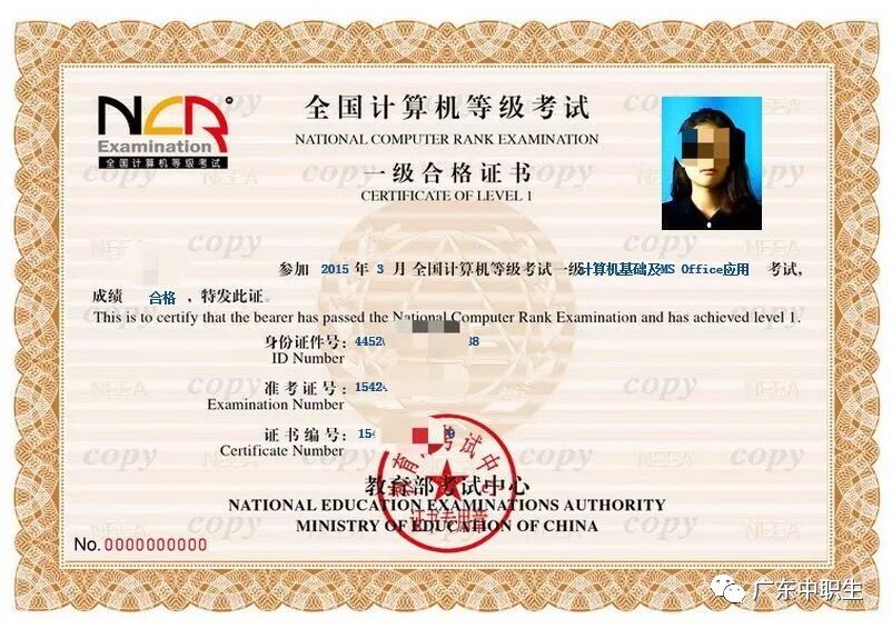 第二种:广东省教育考试院组织考试并颁发的“广东省中等职业技术教育专业技能课程考试证书”