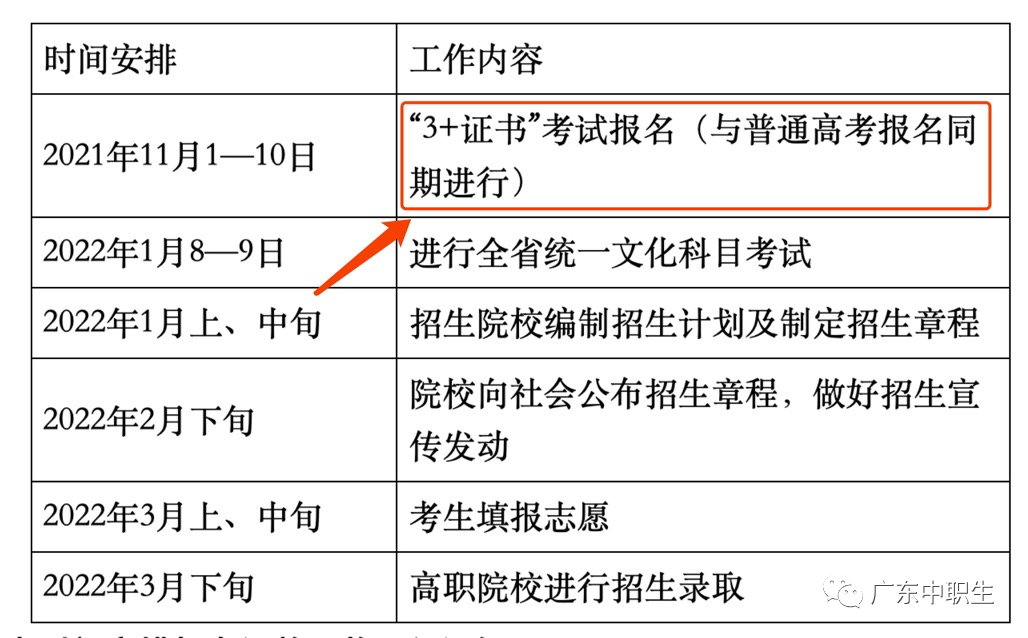 首先我们先看下22年3+证书高考的时间,根据此前考试院公布的[粤招办普〔2021〕41号]号文件,里面明确指出22年3+证书高考将于1月8-9日进行。