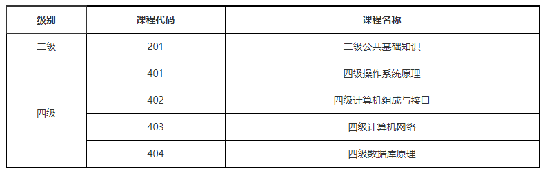 二级和四级相关课程信息