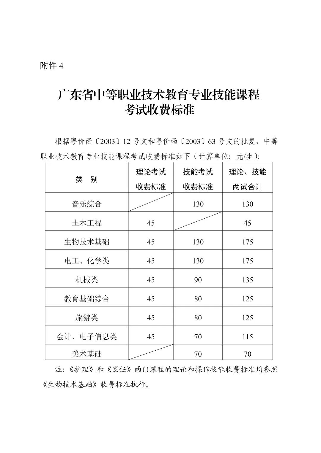 4.广东省中等职业技术教育专业技能课程考试报考收费标准
