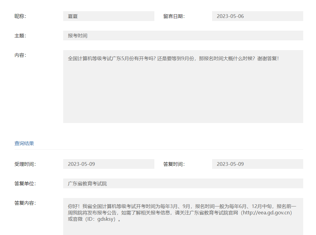近期,广东省教育考试院官方答复关于全国计算机等级考试相关提问。