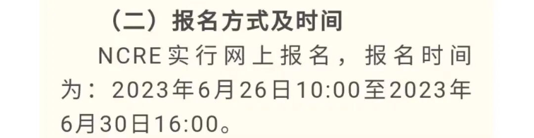 广东省本次全国计算机等级考试(NCRE)报名时间为2023年6月26日10:00-6月30日16:00。广东省今年最后一场计算机考试报名!