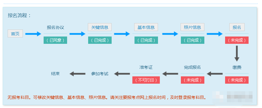 2、新系统务必要完成信息填写,照片上传后,才能在报考当天选择考点进行后面的操作