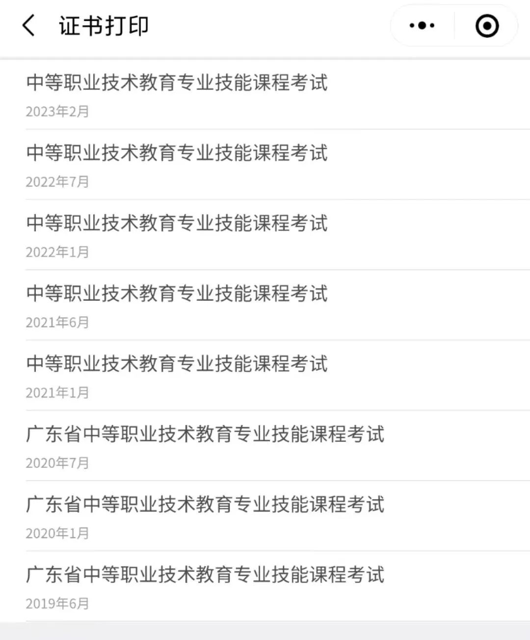 明天中午12点可打印2023年7月的中职技能课程证书。根据此前考试院的公告:我院不统一打印广东省中等职业技术教育专业技能课程考试合格证书。需要合格证书的考生可于9月22日12:00起通过“广东省教育考试院”小程序,在其主页面选择“证书打印”,选择考生对应考试时间批次的证书类别,下载合格证书后自行打印并妥善保存。也可以通过百度App打开“广东省教育考试院-智能小程序”,点击“证书打印”,下载合格证书并自行打印。