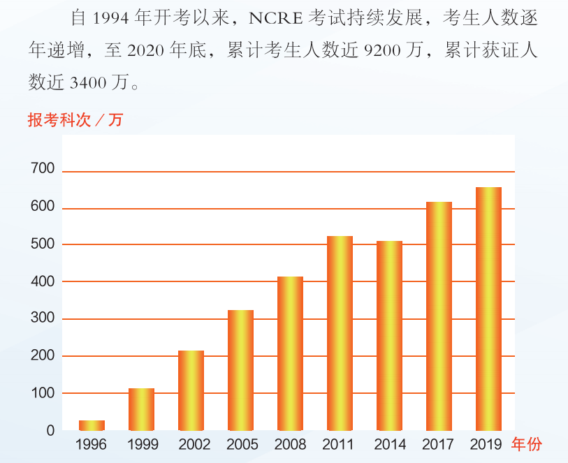 可报考专业最多:全国计算机等级是用来报名3+证书高考的证书之一,因为该证书可报考的院校和专业最多,有“万金油证书”之称。