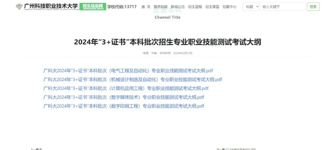广科大2024年“3+证书”本科批次职业技能测试考试大纲
