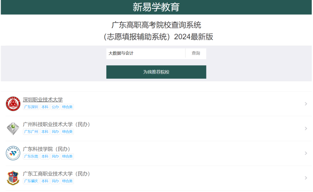 不仅可以搜索专业查询,里面还有超全的广东省3+证书高职高考招生专业信息,只需要输入学校/专业,一键就能查询,系统超智能!