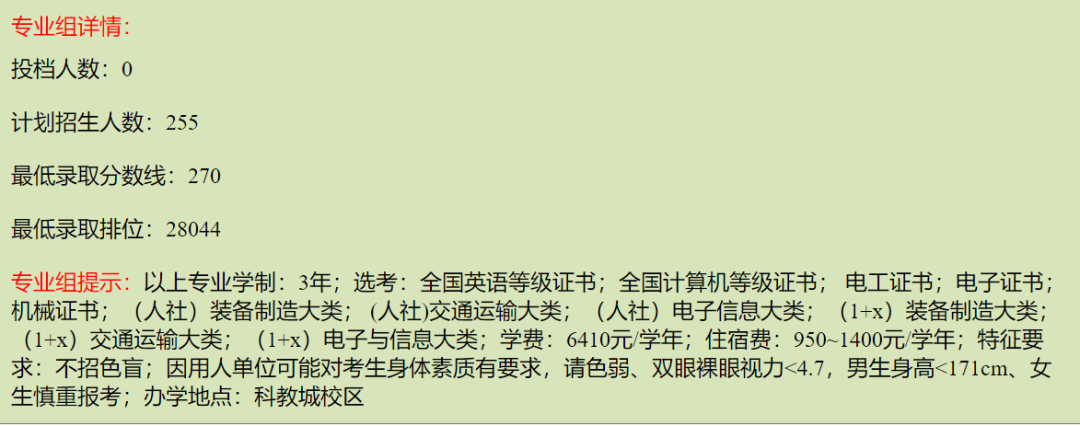 需要注意的是,该专业因用人单位可能对考生身体素质有要求,请色弱、双眼裸眼视力<4.7,男生身高<171cm、女生慎重报考。