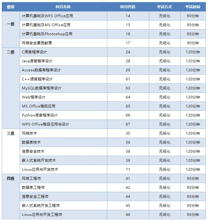 5、三四级科目,建议根据自己的职业规划选报科目,不知道选哪个的,直接报三级网络技术。因为简单,通过率最高。