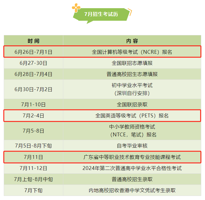 7月招生考试历出炉,这些考试与中职生有关→