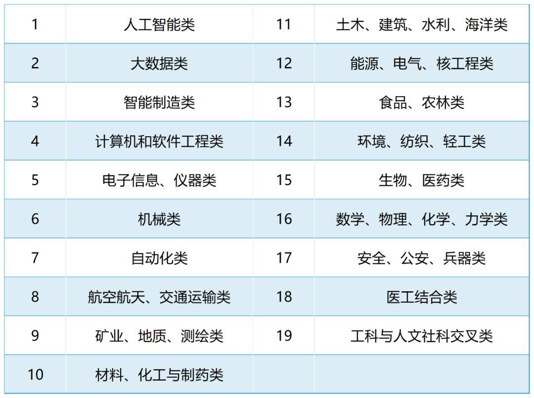 2018年,教育部认定612个项目为首批“新工科”研究与实践项目,包括202个“新工科”综合改革类项目和410个“新工科”专业改革类项目。其中,“新工科”专业改革类涵盖了包括人工智能类、大数据类、智能制造类等19个项目群。