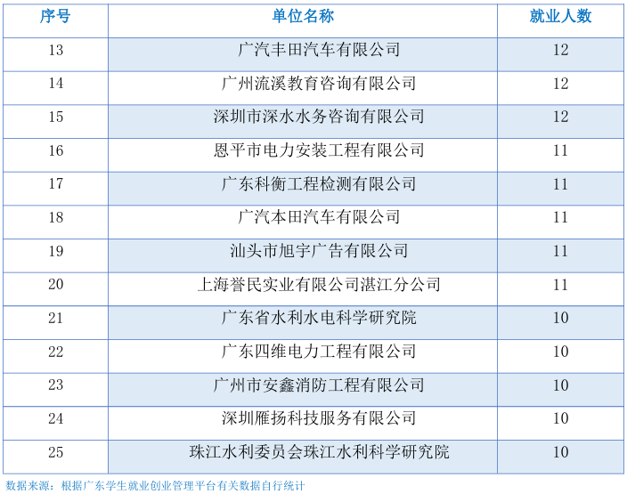 2023届毕业生就业人数10人(含)以上的用人单位有25家,具体为: