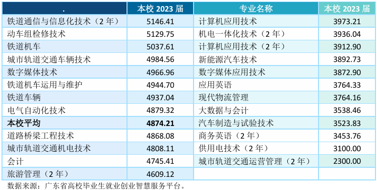 来源:广州铁路职业技术学院2023年毕业生就业质量年度报告